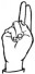 На ћирилици написано РАНИСЛАВА КАЛОПЕР састоји се из 16 слова [?]. Исписано ћириличном једноручном азбуком за глувонеме: